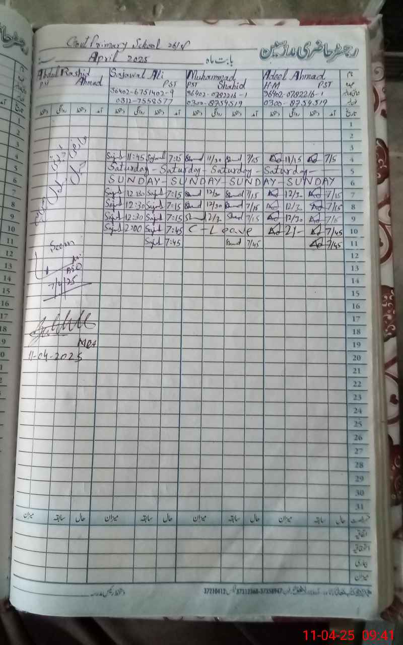 | District: PAKPATTAN | Tehsil: PAKPATTAN | Markaz: CHAKBEDI 2 - MALE | Level: Primary | |