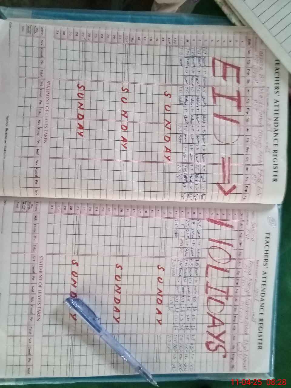 | Leave | Duty | Absent | Maternity | Medical | Ex- Pak |