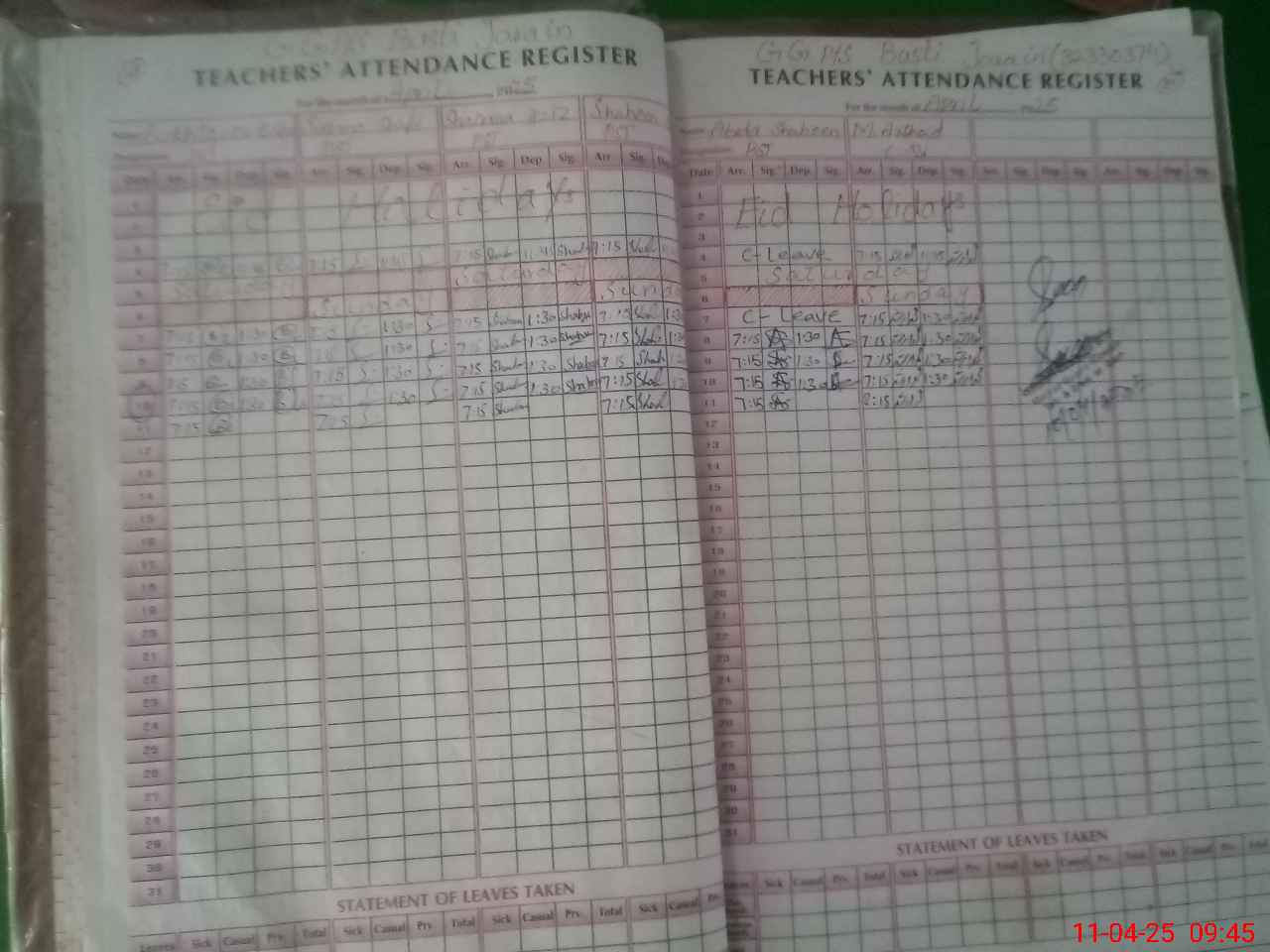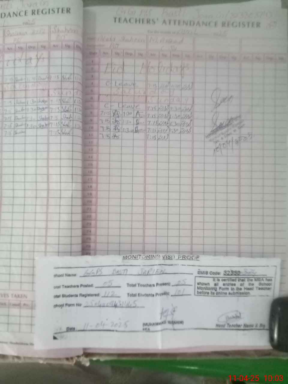 | Attendance Register | Head Teacher | MEA with School | Visit Proof |