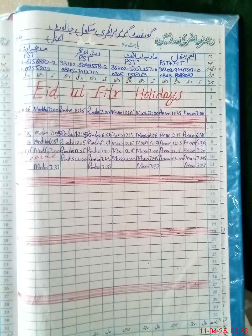 | Name: An**** Ba**** Designation: (School Headmaster's/Headmistress's) PST Phone/Cell Number: 03**** |