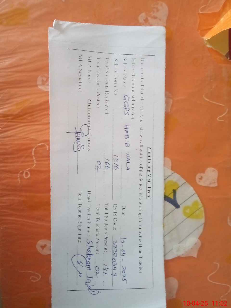 | EMIS Code: 32320349 | Name of School: GGPS HABIB WALA | |||