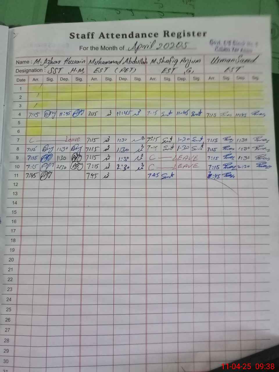 | Monitoring Date: 11-04-2025 | Start Time: 11-04-2025 09:00 AM | End Time: 11-04-2025 09:46 AM | Name of MEA: Ma**** UlHa**** | |