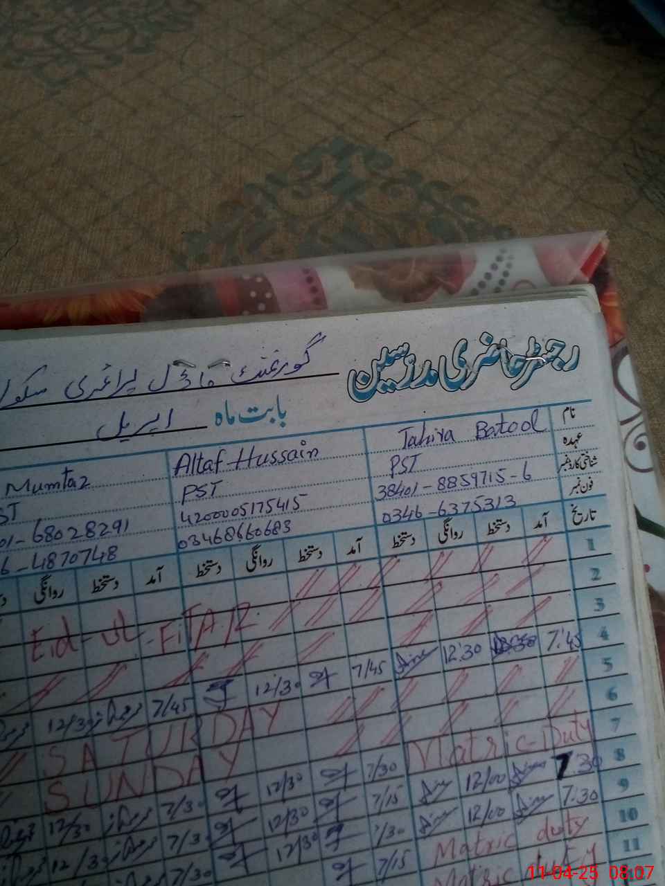 | Name: Ta**** Ba**** Designation: (School Headmaster's/Headmistress's) PST Phone/Cell Number: 03**** |