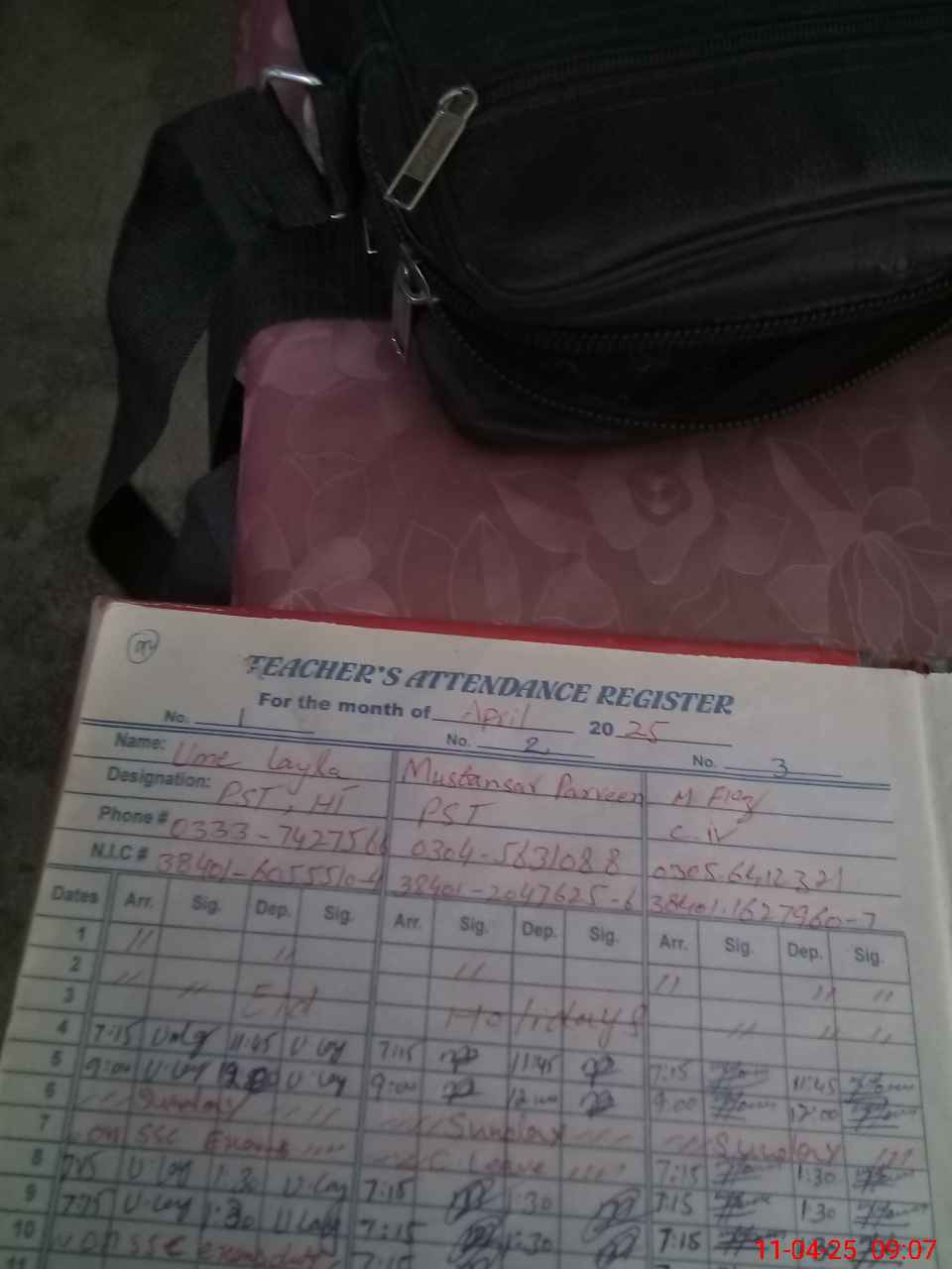 | Name: UM**** LA**** Designation: (School Headmaster's/Headmistress's) PST Phone/Cell Number: 03**** |