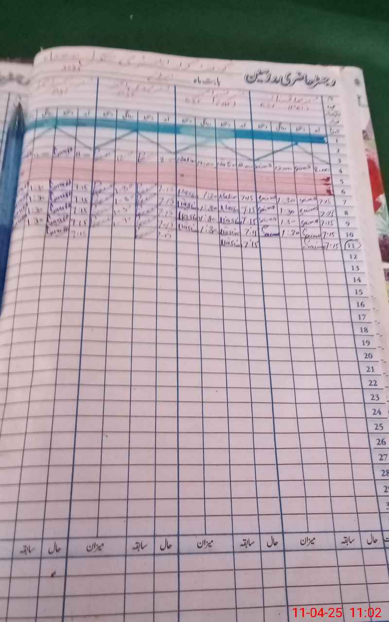 | CNIC | Full Name | Designation | R/C | Absence During Last Calender Month |