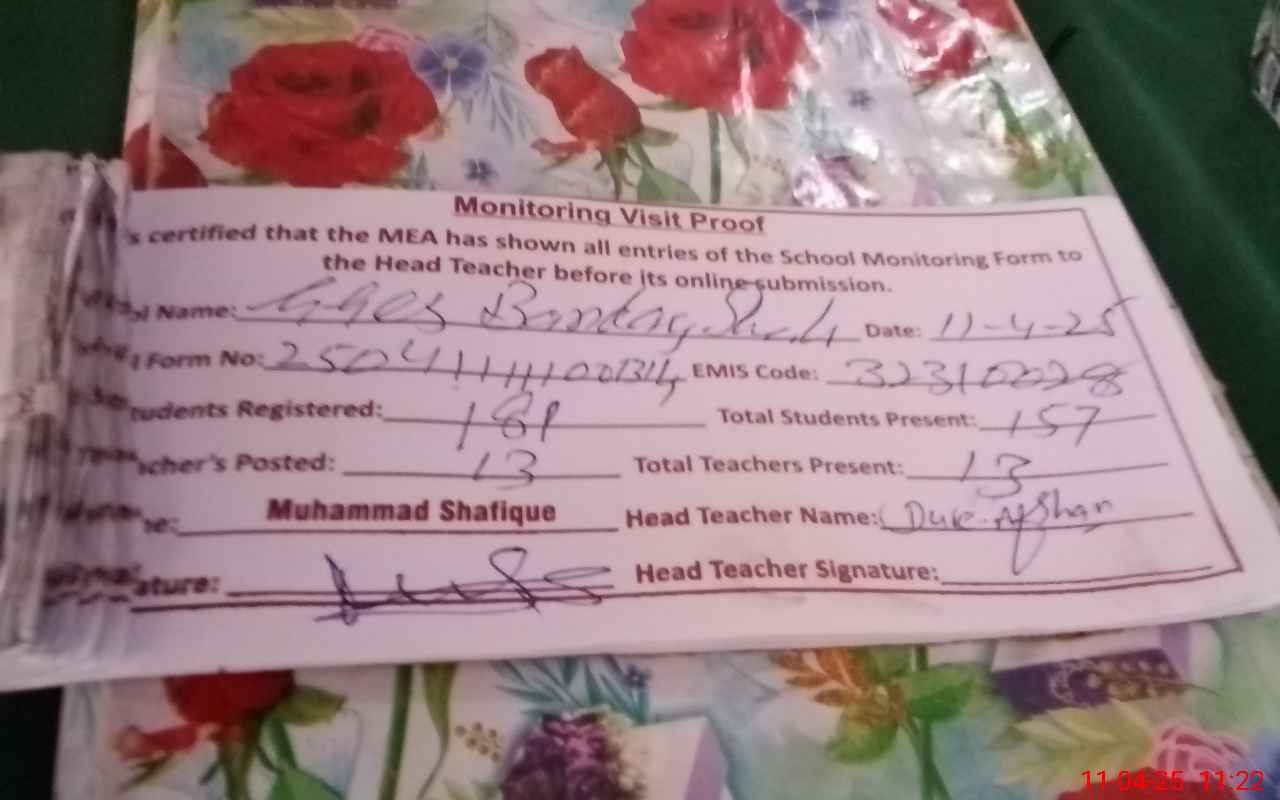 | EMIS Code: 32310028 | Name of School: GGES BANDAY SHAH | |||