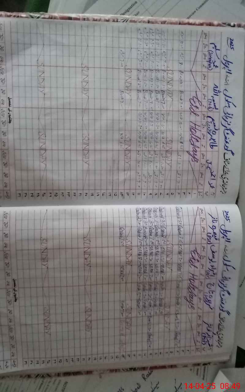 | CNIC | Full Name | Designation | R/C | Absence During Last Calender Month |