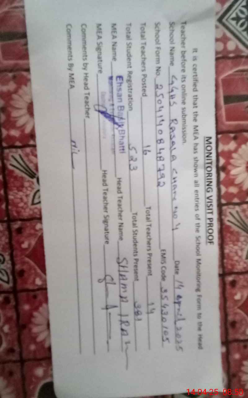 | EMIS Code: 35430105 | Name of School: GGHS RASALA CHAK NO. 4 | |||