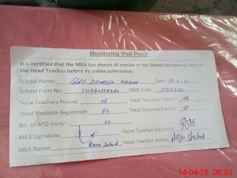 | Certified that this School was Inspected by the Undersigned MEA/DMO Today and the Information Stated Above is as Per Record. | |||||