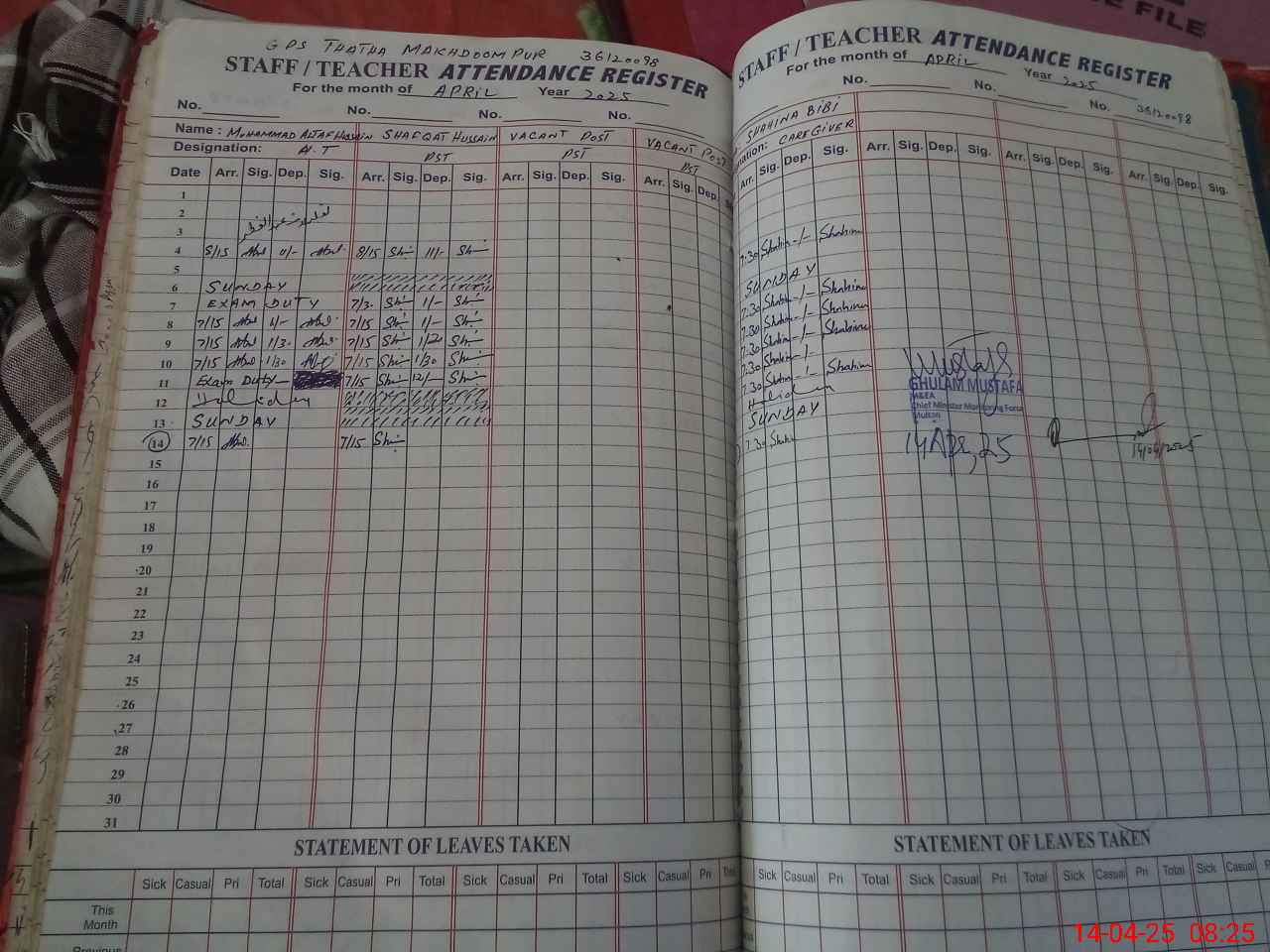 | Name: Mu**** Al**** Hu**** Designation: (School Headmaster's/Headmistress's) PST Phone/Cell Number: 03**** |