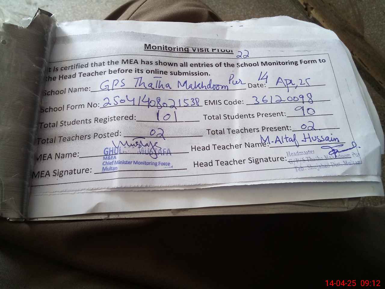 | EMIS Code: 36120098 | Name of School: GPS THATHA MAKHDOOM PUR P/O BASTI KANERA SHUJABAD | |||