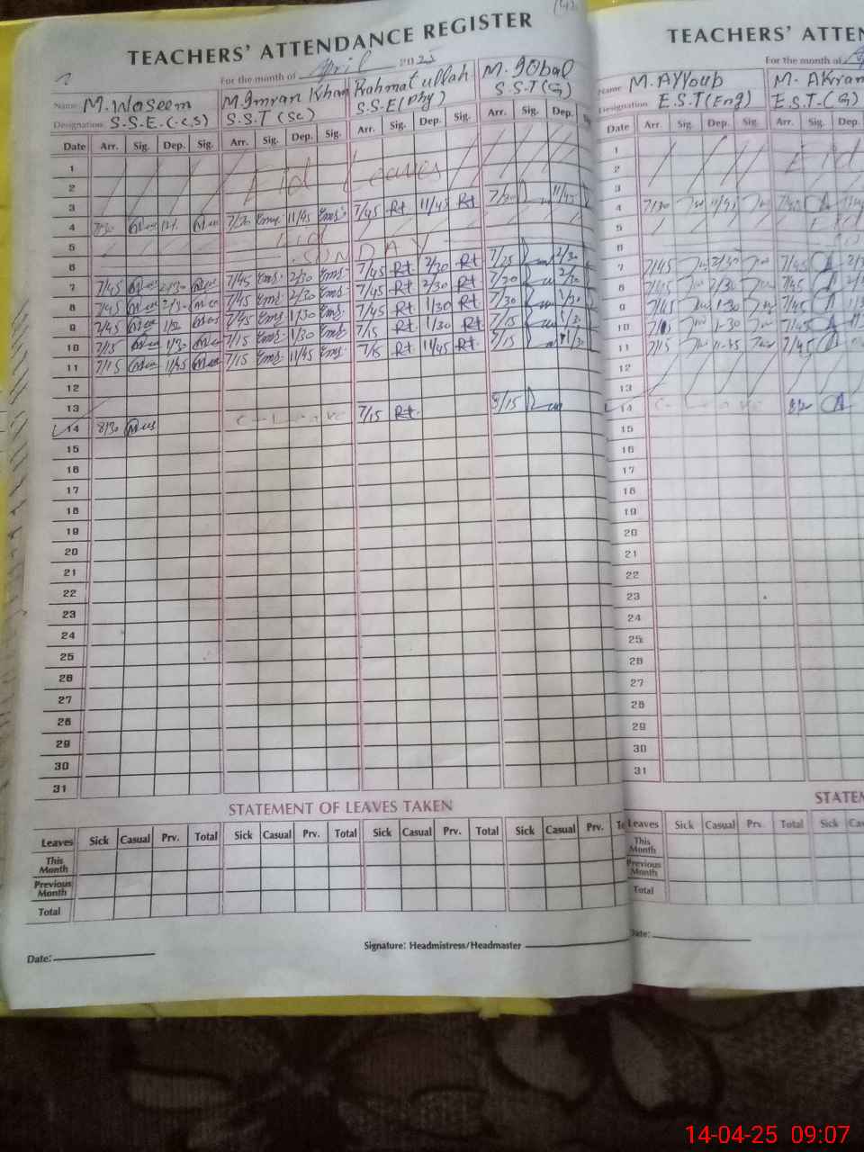 | 36**** | Mu**** Iq**** As**** | S.S.T.(GENERAL) | Temporary | 2 | 0 | 0 | 0 | 0 | 0 | 0 | 0 | 2 | Present (Latecomer) |