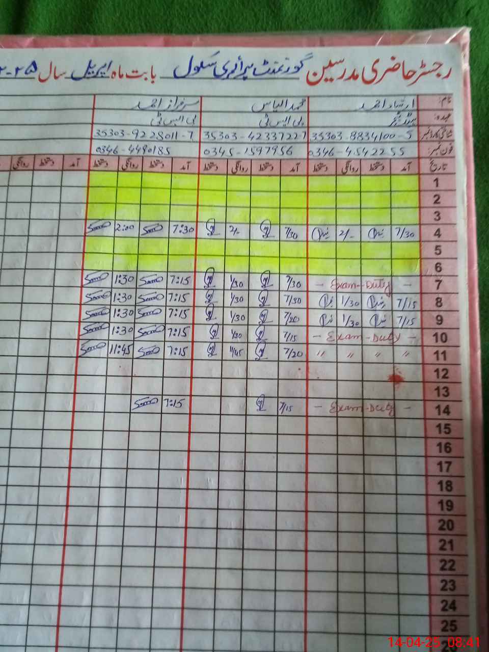 | 35**** | Ir**** Ah**** | PST | Regular | 0 | 0 | 0 | 0 | 0 | 0 | 0 | 0 | 0 | Exam Duty |