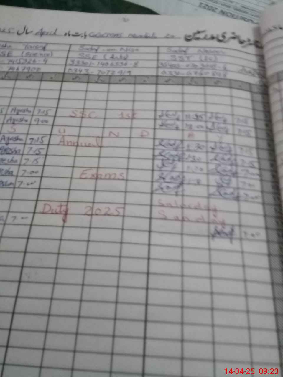 | 33**** | Sa**** UnNi**** | SSE | Contract | 0 | 0 | 0 | 0 | 0 | 0 | 0 | 0 | 0 | Exam Duty |