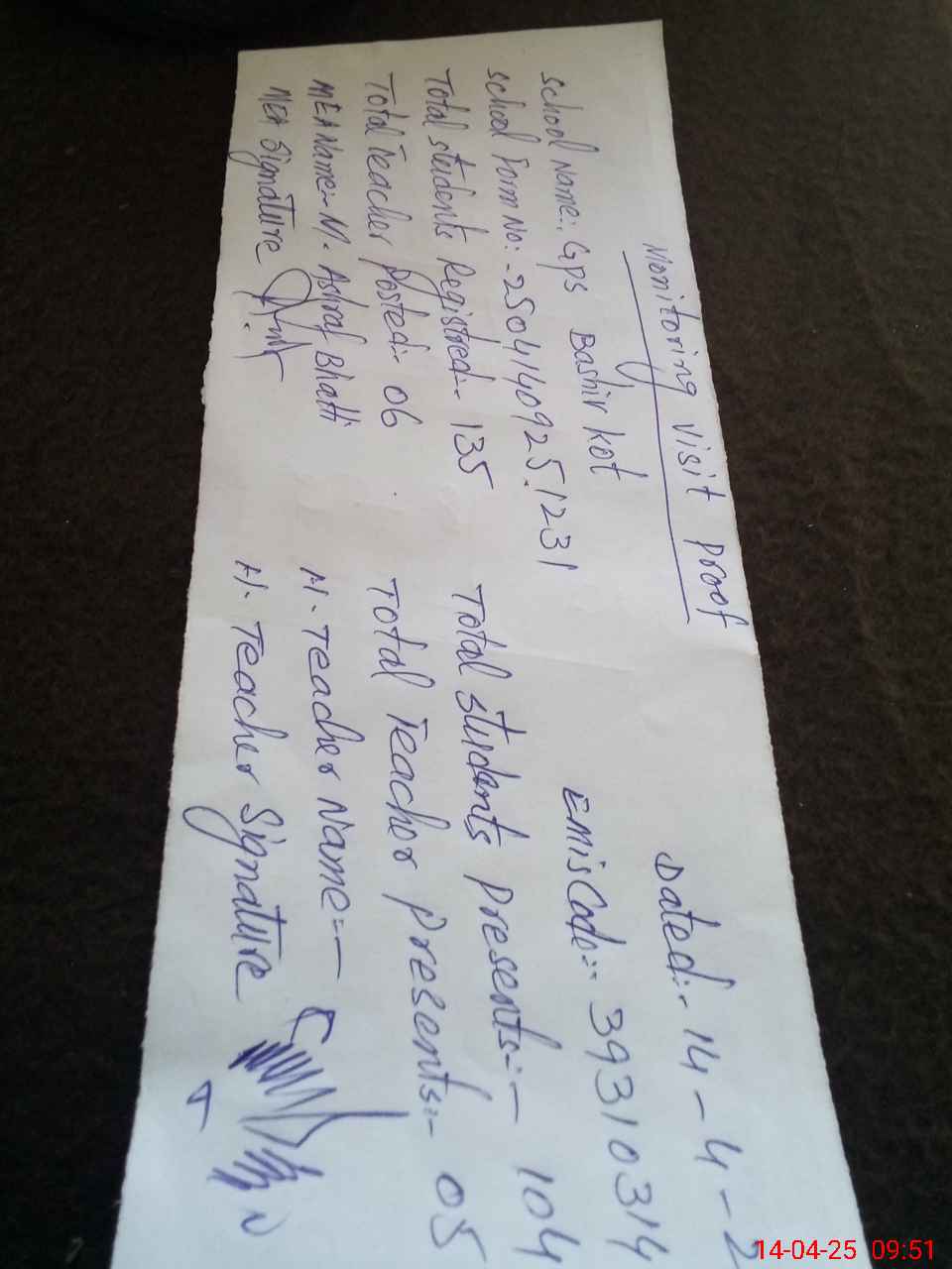 | EMIS Code: 39310314 | Name of School: GPS BASHIR KOT | |||