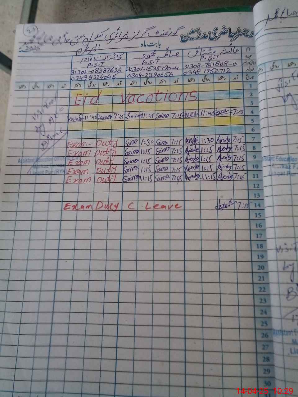| 31**** | Ka**** Qa**** | PST | Regular | 0 | 26 | 0 | 0 | 0 | 0 | 0 | 0 | 0 | Exam Duty |