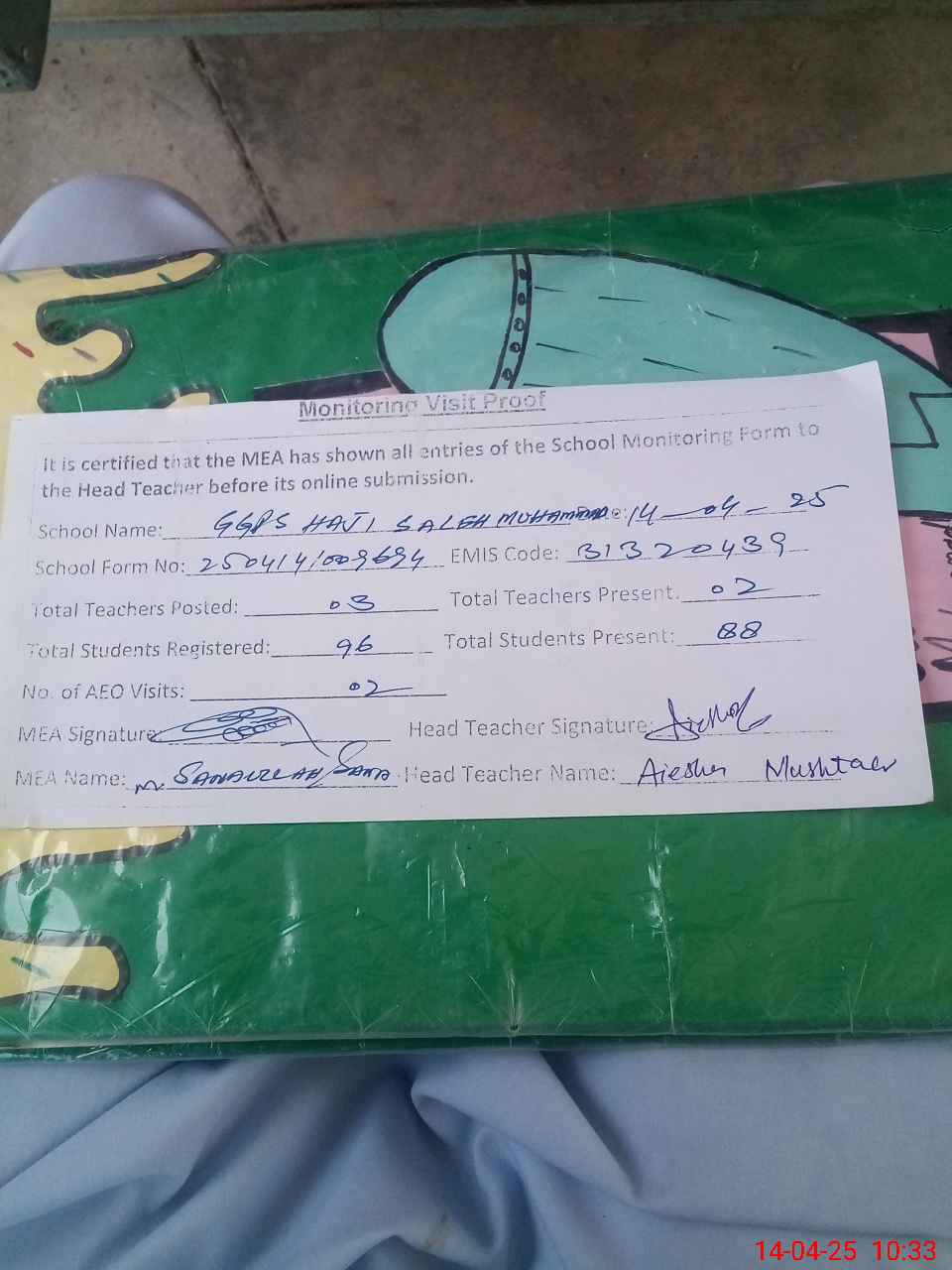 | EMIS Code: 31320439 | Name of School: GGPS HAJI SALEH MUHAMMAD FEROZA | |||