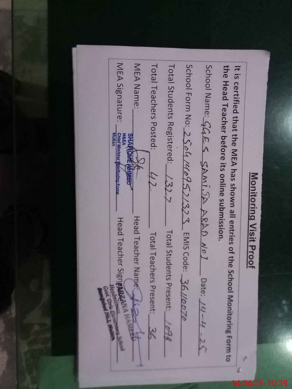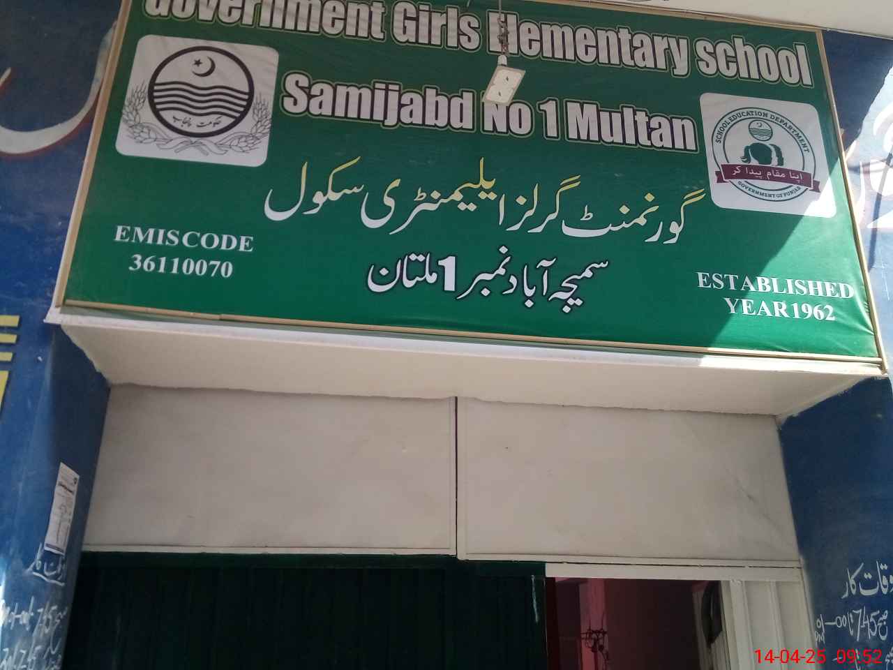 | EMIS Code: 36110070 | Name of School: GGES SAMIJABAD NO.1 MULTAN | |||