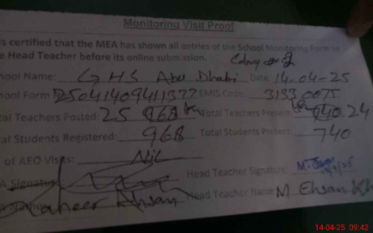 | EMIS Code: 31330075 | Name of School: GHS ABU DAHBI COLONY NO. 2 | |||