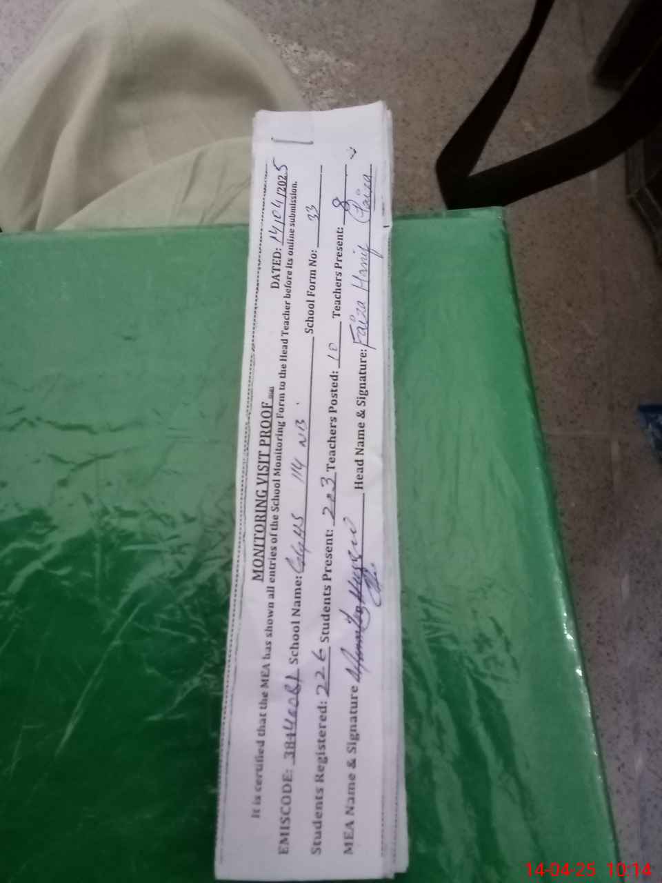 | Certified that this School was Inspected by the Undersigned MEA/DMO Today and the Information Stated Above is as Per Record. | |||||