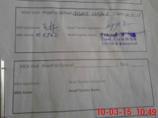 | Certified that this School was Inspected by the Undersigned MEA/DMO Today and the Information Stated Above is as Per Record. | |||||