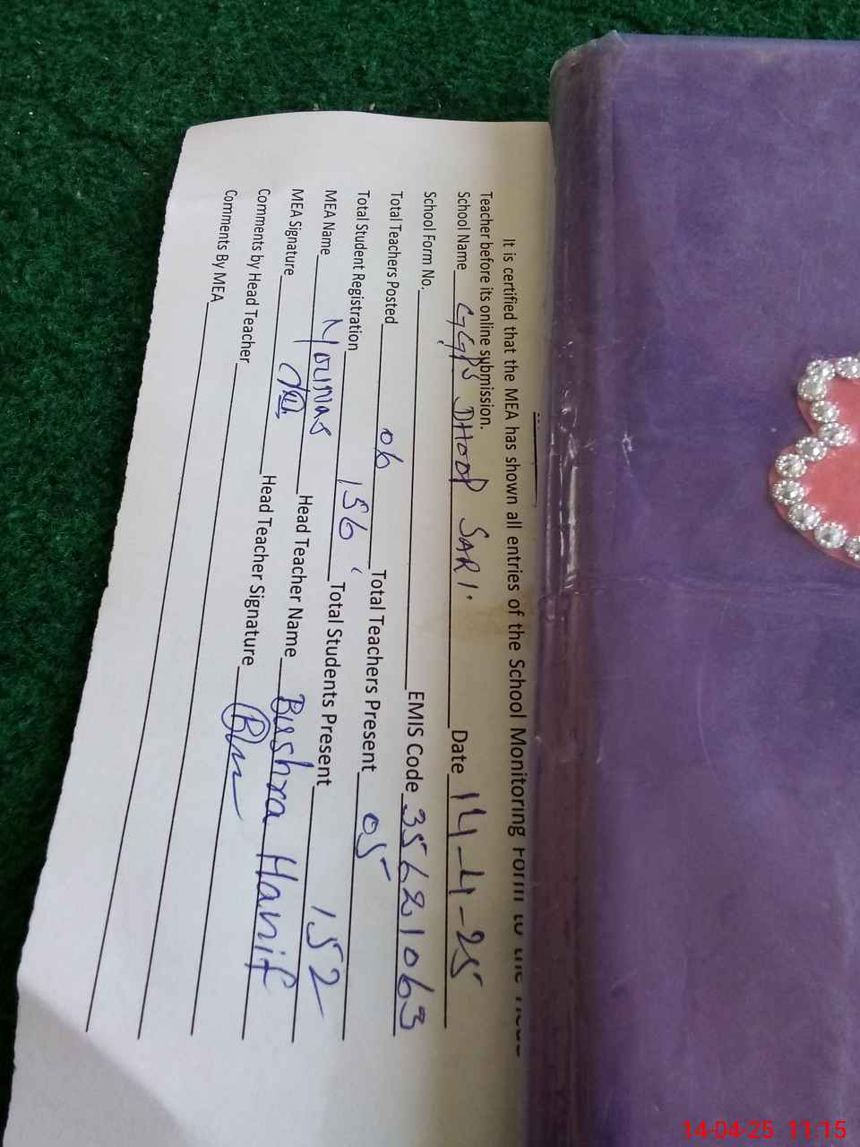 | EMIS Code: 35621063 | Name of School: GGPS DHUPP SARRI CHAK 78 | |||