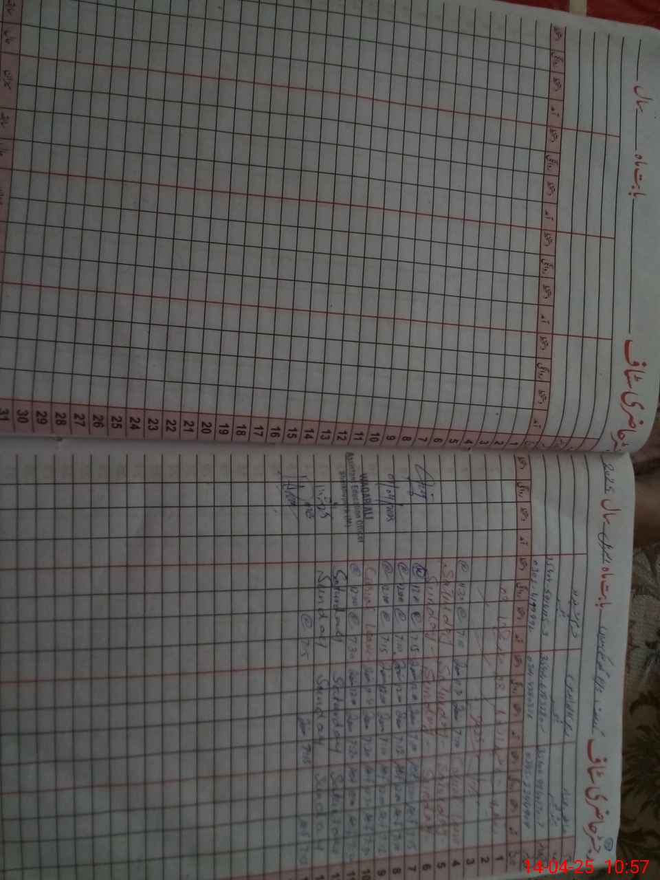 | CNIC | Full Name | Designation | R/C | Absence During Last Calender Month |