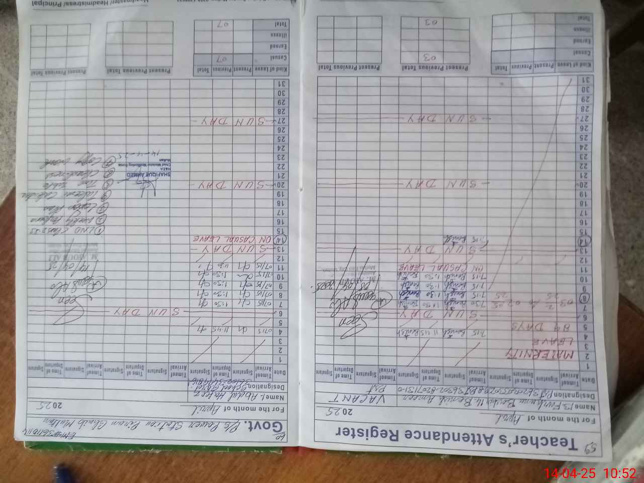 | 36**** | Mu**** Ra**** Iq**** | PST | Regular | 0 | 0 | 0 | 0 | 0 | 0 | 0 | 0 | 0 | Exam Duty |