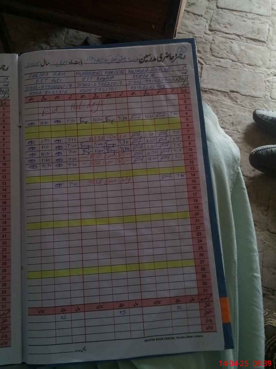 | 31**** | Mu**** Fa**** | SESE | Contract | 0 | 0 | 0 | 0 | 0 | 0 | 0 | 0 | 0 | Exam Duty |