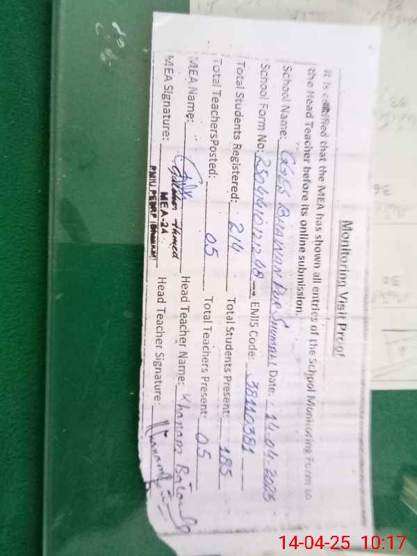 | Certified that this School was Inspected by the Undersigned MEA/DMO Today and the Information Stated Above is as Per Record. | |||||