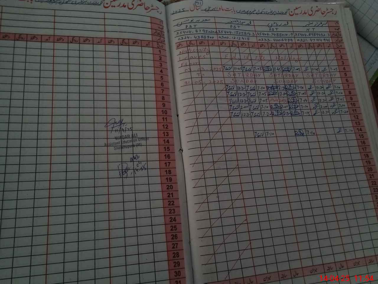 | CNIC | Full Name | Designation | R/C | Absence During Last Calender Month |