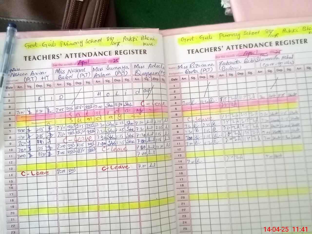 | CNIC | Full Name | Designation | R/C | Absence During Last Calender Month |