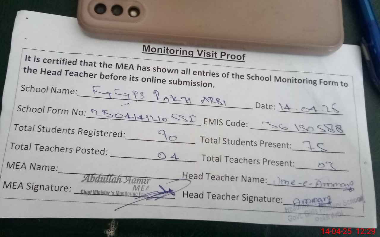 | Attendance Register | Head Teacher | MEA with School | Visit Proof |