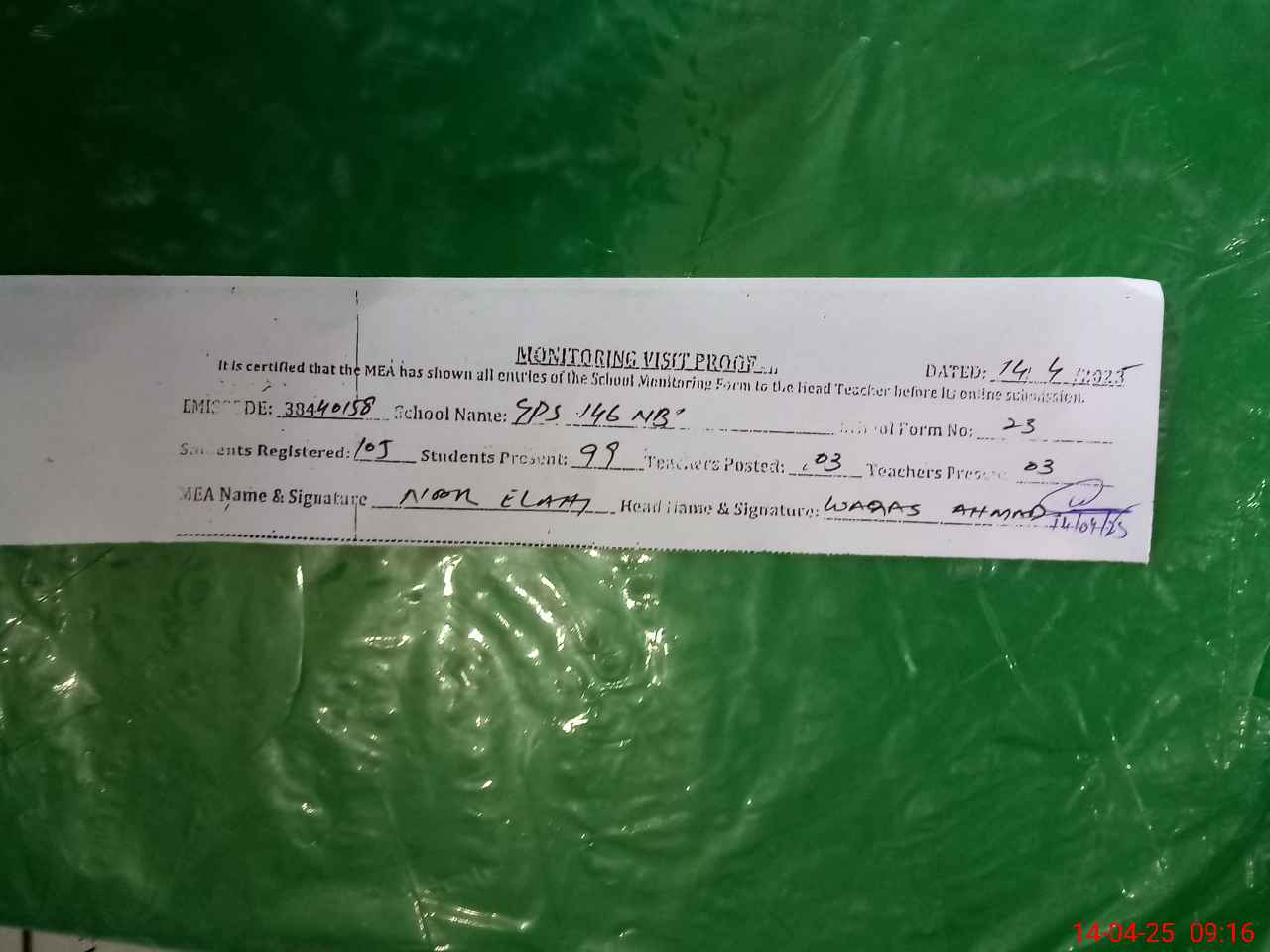 | EMIS Code: 38440158 | Name of School: GPS CHAK NO.146 NB | |||