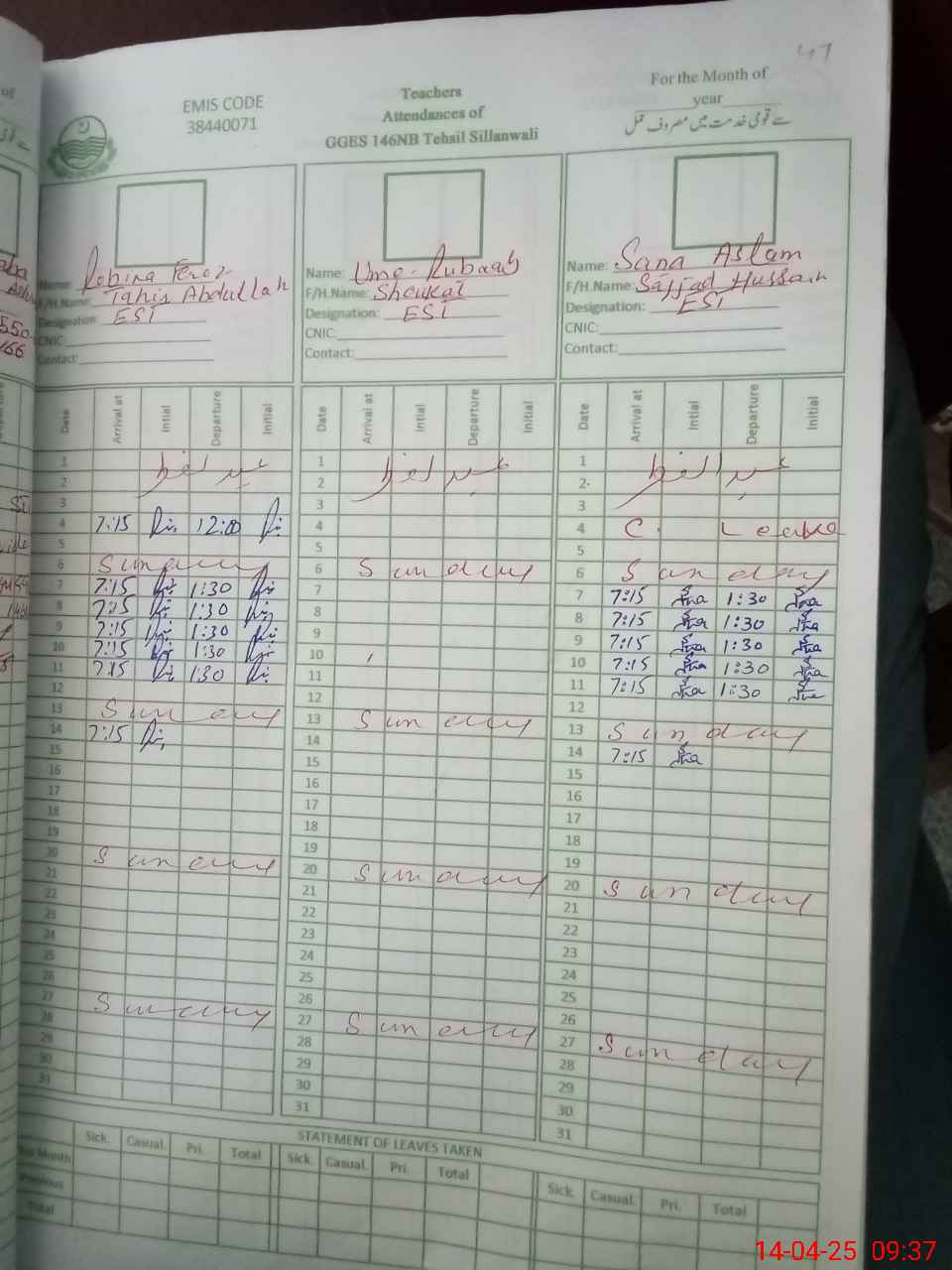 | 38**** | Ay**** | Regular | 31 | 0 | 0 | 31 | 0 | 0 | 0 | 0 | 0 | Maternity | |