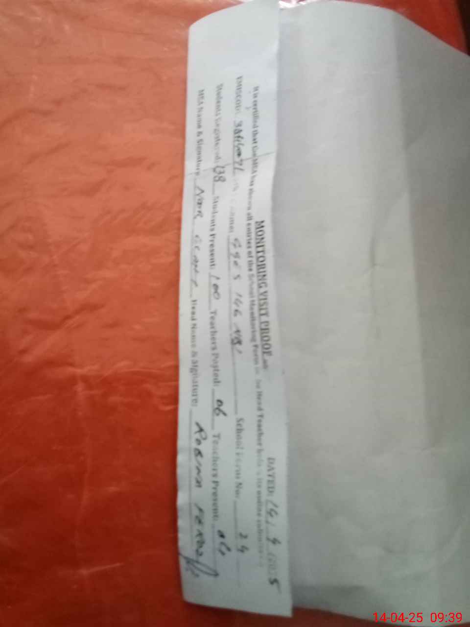 | Attendance Register | Head Teacher | MEA with School | Visit Proof |