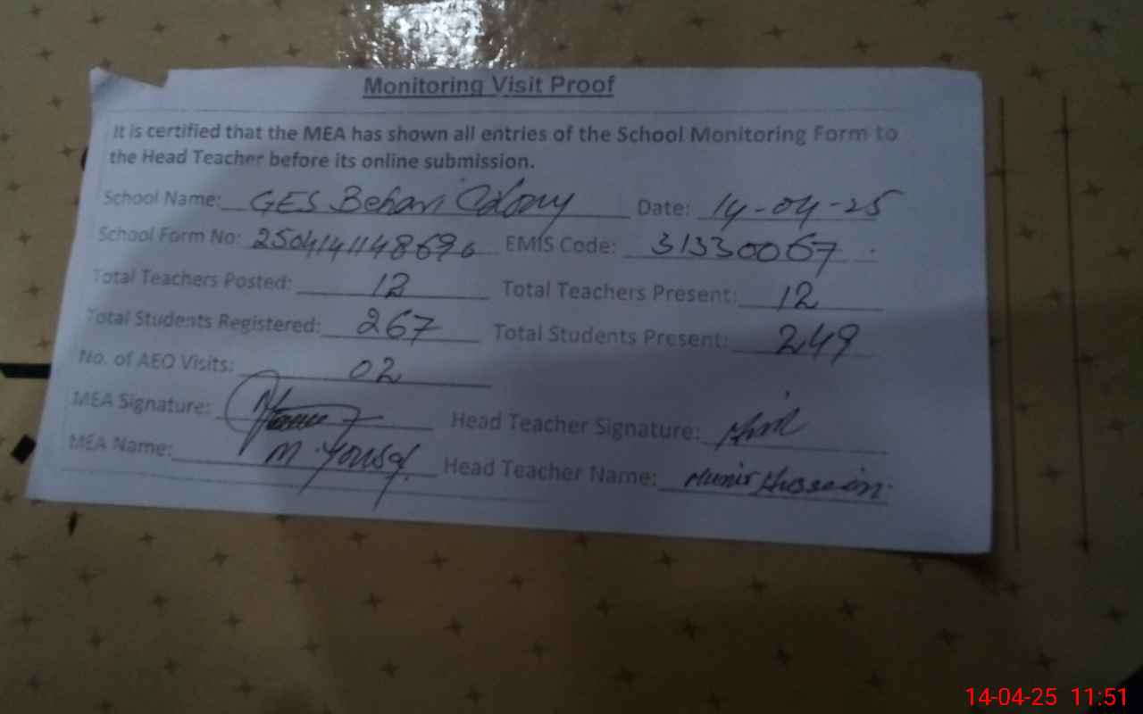 | EMIS Code: 31330067 | Name of School: GES BEHARI COLONY | |||