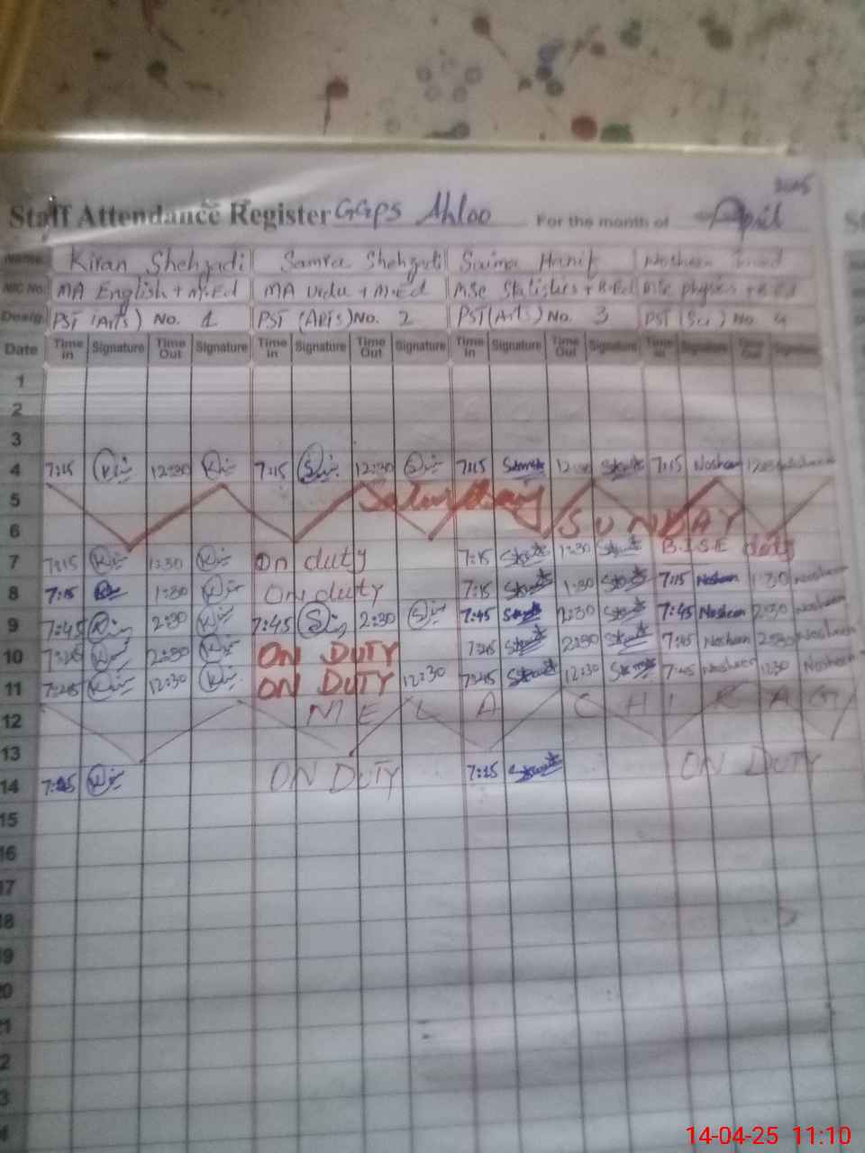 | 36**** | No**** Ja**** | PST | Regular | 0 | 0 | 0 | 0 | 0 | 0 | 0 | 0 | 0 | Exam Duty |