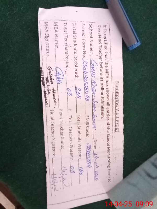 | EMIS Code: 38110384 | Name of School: GMPS RAZI SHAH JANUBI PO NOTAK | |||