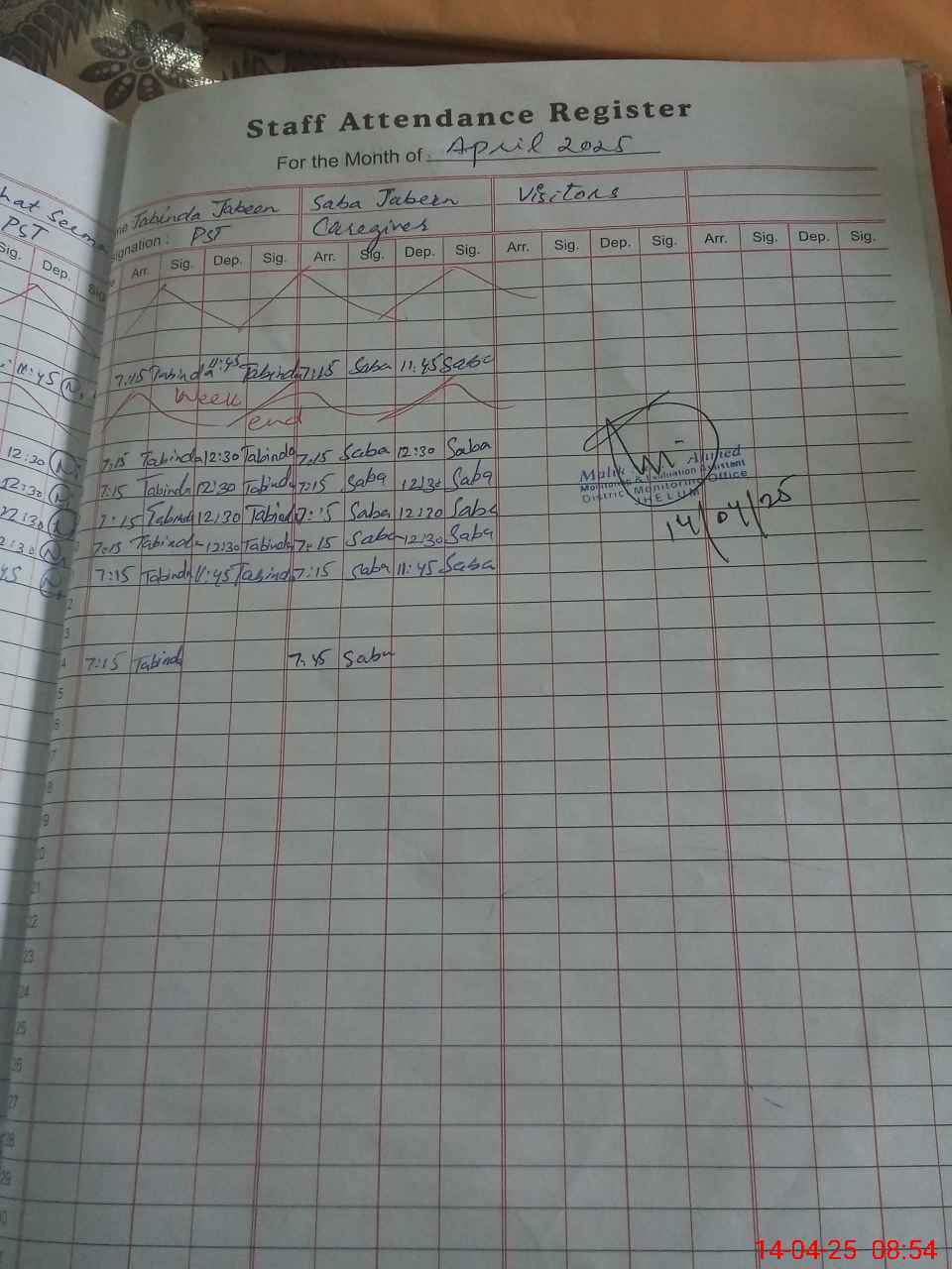 | Monitoring Date: 14-04-2025 | Start Time: 14-04-2025 08:31 AM | End Time: 14-04-2025 08:55 AM | Name of MEA: Na**** Ah**** | |