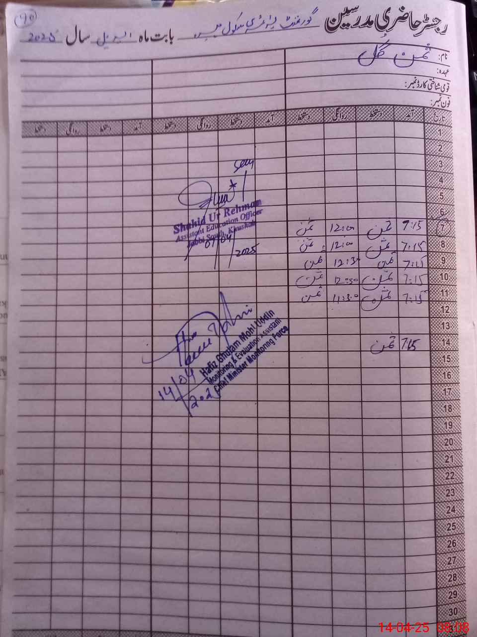 | Name: SA**** Kh**** Designation: (School Headmaster's/Headmistress's) Pst Phone/Cell Number: 03**** |