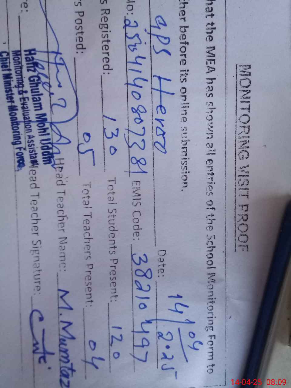 | EMIS Code: 38210497 | Name of School: GPS HEROO | |||