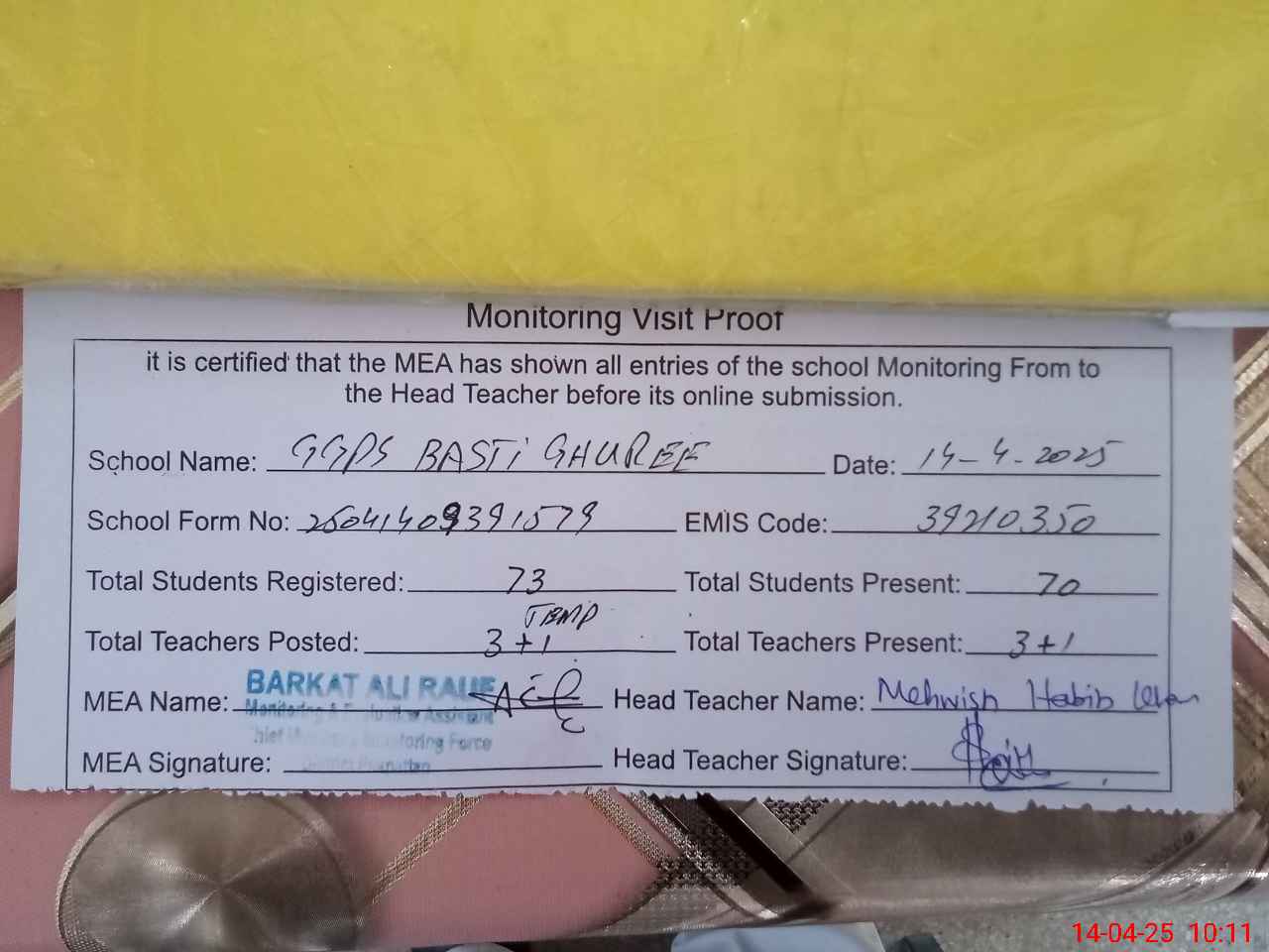 | EMIS Code: 39210350 | Name of School: GGPS BASTI GHUREE | |||