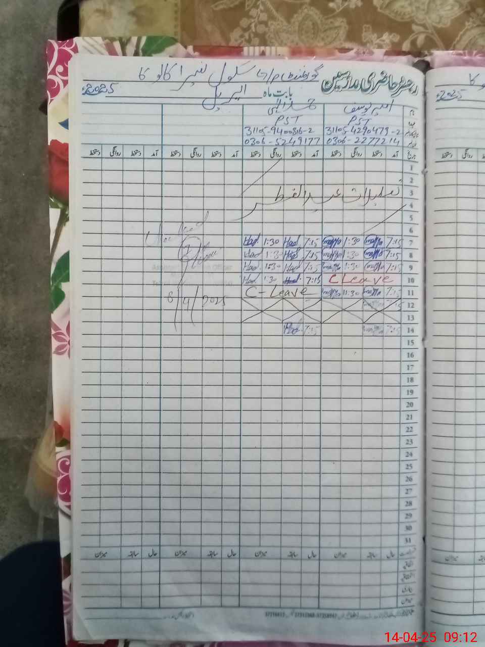 | CNIC | Full Name | Designation | R/C | Absence During Last Calender Month |