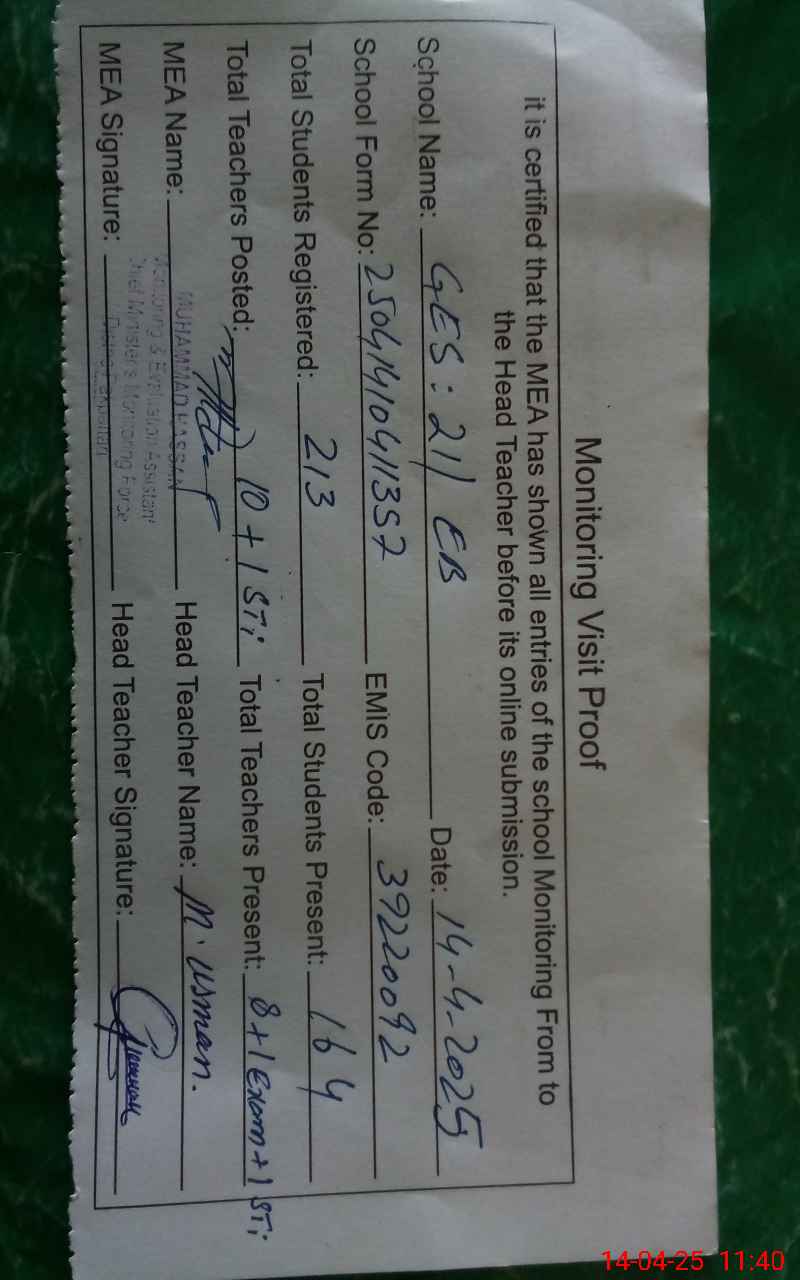 | EMIS Code: 39220092 | Name of School: GES 21 EB | |||