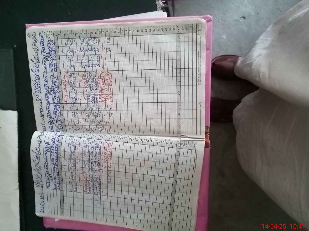 | Leave | Duty | Absent | Maternity | Medical | Ex- Pak |
