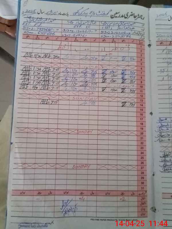 | 31**** | Mu**** Kh**** Al**** | ESE | Contract | 0 | 0 | 0 | 0 | 0 | 0 | 0 | 0 | 0 | Exam Duty |
