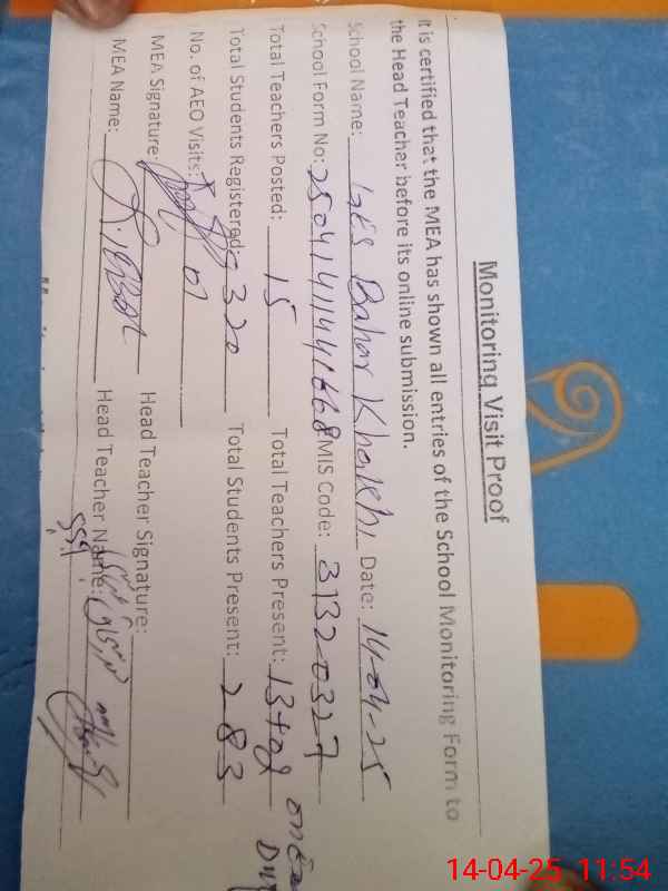 | EMIS Code: 31320327 | Name of School: GES BAHAR KHAKHI | |||