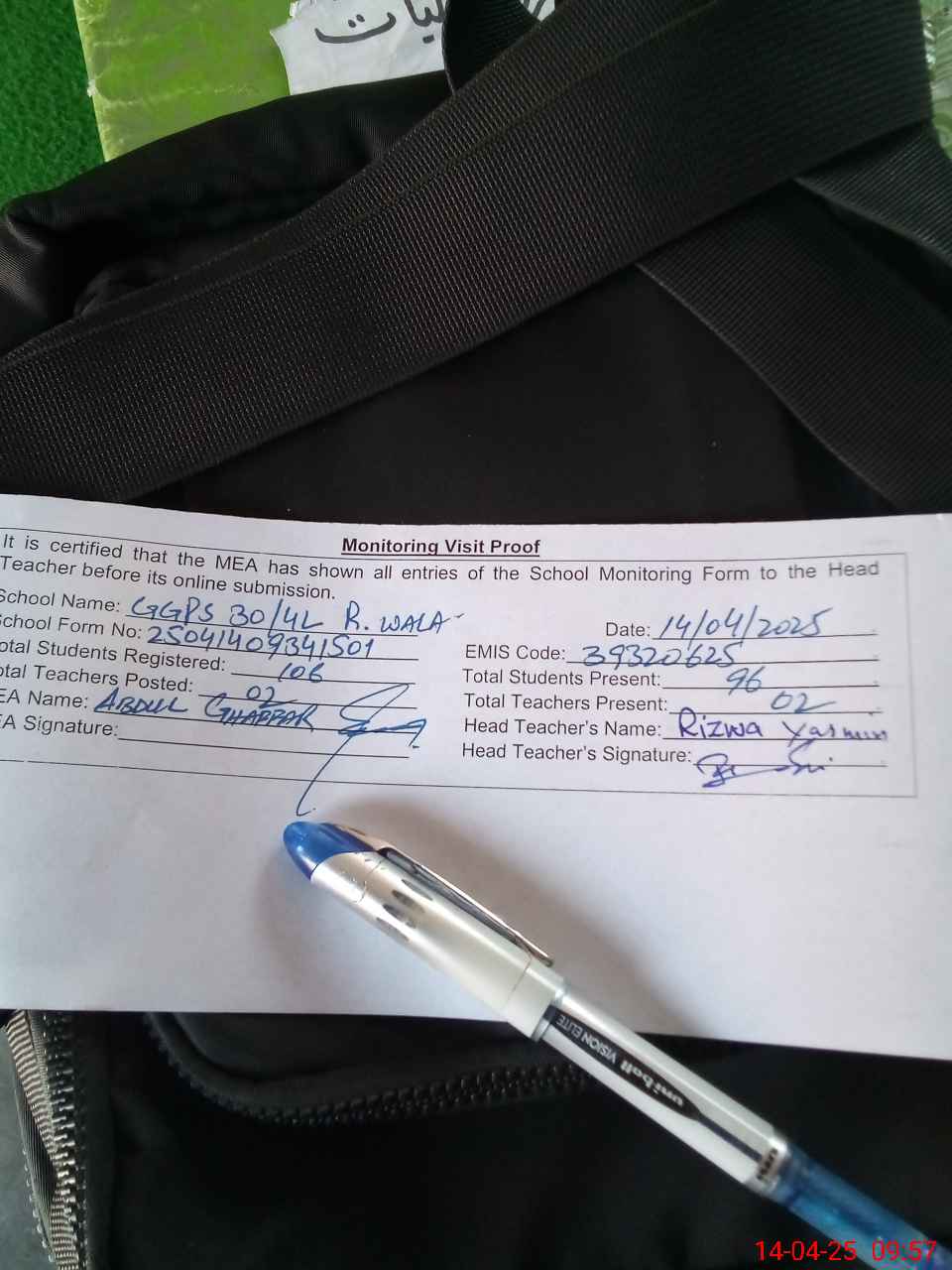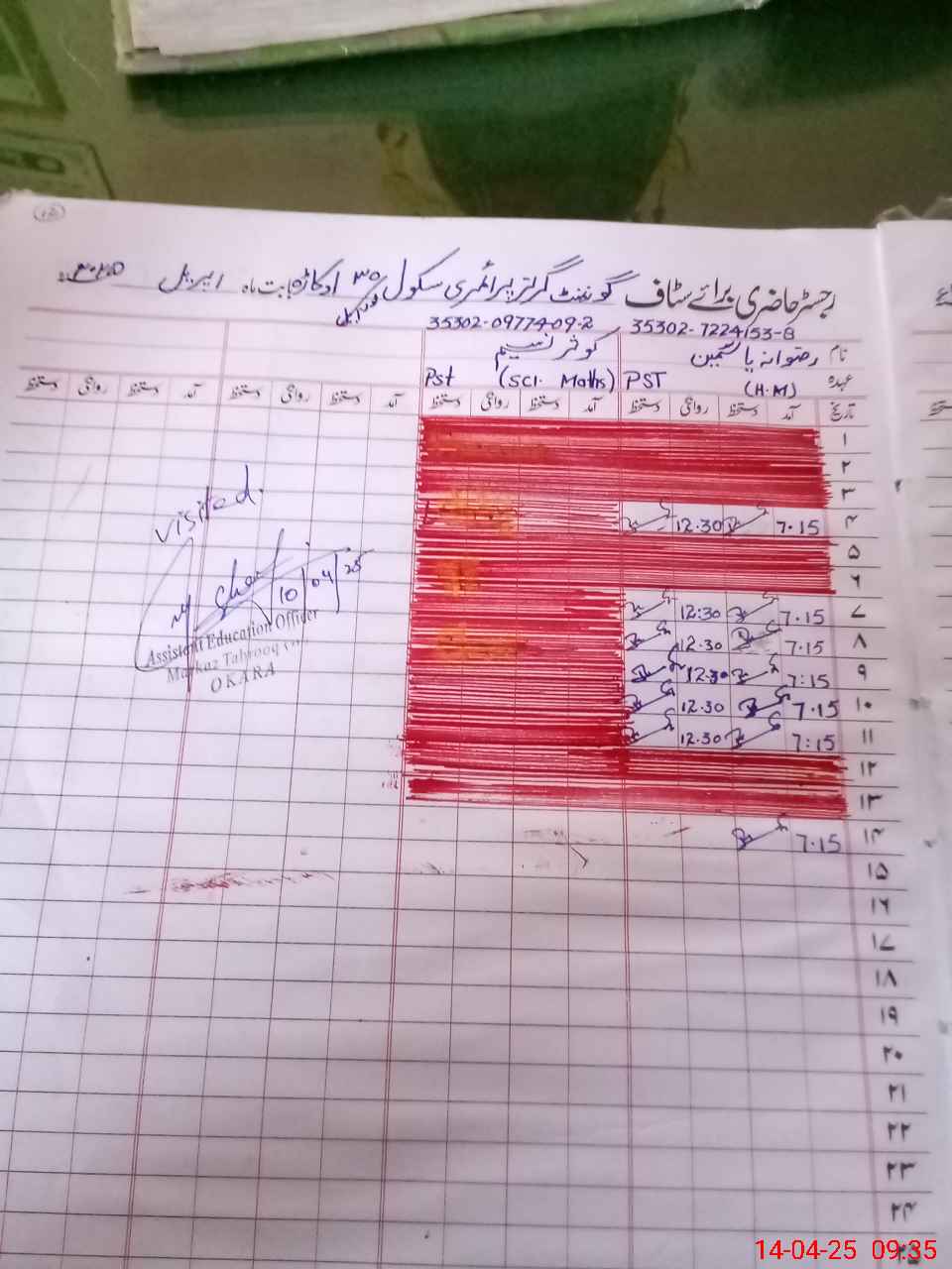 | Name: RI**** YA**** Designation: (School Headmaster's/Headmistress's) PST Phone/Cell Number: 03**** |