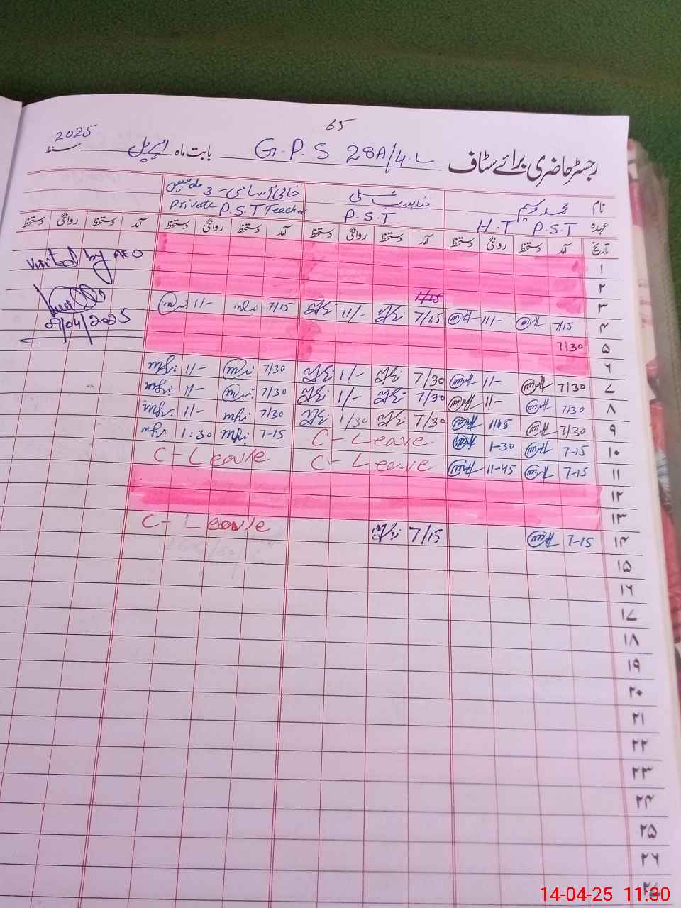 | CNIC | Full Name | Designation | R/C | Absence During Last Calender Month |